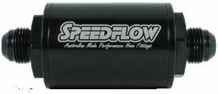 We have manufactured our own range of aluminium ball valves, these are lightweight, beautifully machined and anodised in our Taree facility. Available in three body sizes and a range of sizes to suit many applications including fuel, oil water and air. The Speedflow ball valves are now available and incorporate a panel mount option as standard with the ability to connect a cable to the handle. Constructed from 6061 aluminium body, handle, adapters and ball with a stainless steel drive spindle and machined Teflon® seals. The XS Body ball valves utilize a stainless ball suitable for all automotive fluids. These compact, high quality units that will perform in a high performance environment as expected from all Speedflow Products! SMAll BoDy BAll VAlVeS Blue BlAck Size BAll iD 650-06 650-06-BLK -6 Male -8 650-08 650-08-BLK -8 Male -8 lArge BoDy BAll VAlVeS Blue BlAck Size BAll iD 650-10 650-10-BLK -10 Male -12 650-12 650-12-BLK -12 Male -12 XS BoDy BAll VAlVeS BlAck Size BAll iD 650-02-BLK 1/8”NPT Female -4 650-03-BLK -3 Male -4 650-04-BLK -4 Male -4 iNliNe ScAVeNge FilterS BlAck Size 609-00-10-BLK -10 609-00-12-BLK -12 609-00-16-BLK -16 iNliNe FilterS - ScAVeNge FilterS Speedflow manufactures these coarse screen filters that are designed to be placed on scavenge lines to protect the dry sump pump from debris during a major engine failure. We offer the scavenge filters in a variety of sizes and options. 90° ScAVeNge Filter BlAck Size 609-90-12-BLK -12 FiltereD SuMp ADApterS Blue BlAck Size port 920-10-12-FS 920-10-12-FS-BLK -10 -12 920-12-FS 920-12-FS-BLK -12 -12 920-16-12-FS 920-16-12-FS-BLK -16 -12