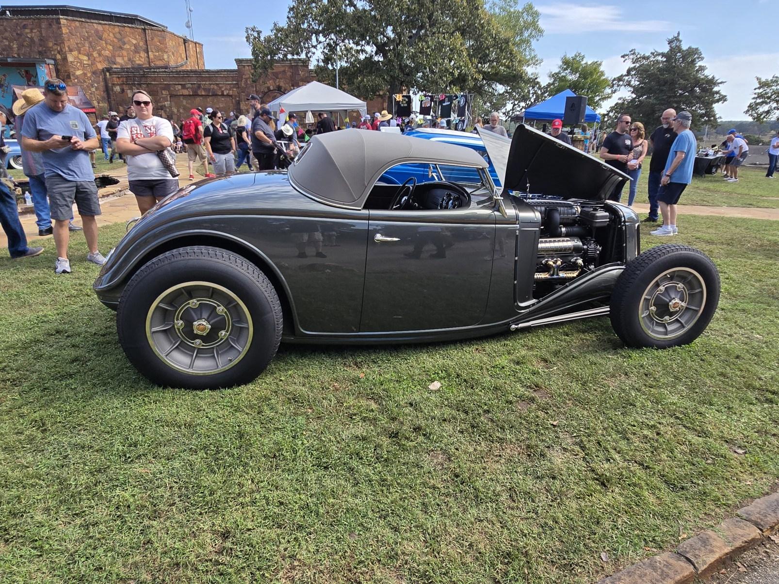 Saturday at Woolaroc blew expectations wide open. The roadster lineup stretched from oak grove to meadow. Every hot rod, chopped, slammed, smooth painted or patinaed found a place. Car owners answered questions, engines idled near wild life fences, and museum buildings dotted the horizon.