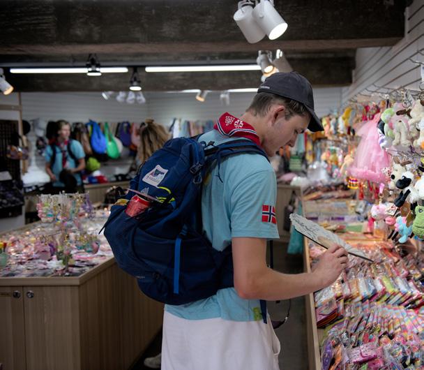 holde varmen på kalde turnetter? 16 Ta topputmerkelsen! 18 Ælj til topps 20 Spiselige vekster og andre buskvekster 23 Verdenspremiere for Rottepatruljen ......................... 26 Rottepatruljen ......................... 27 Auroras beste bøker ................ 29 Valg 2023: Hva mener partiene om våre hjertesaker? .............. 32 Cool sommer 35 Speiderkino i høstmørket 36 Ungt lederskap: På tide å overta roret 38 Agora: Rovertreff i Portugal 39 Reisebrev frå Kypros 40 Ta et merke: Førstehjelp 42 World Scout Jamboree 2023 43 Portrettet: Flu Hartberg 50 Kretsleirsommer 54 Topputmerkelsen .................... 60 Speiderlivet ............................. 61 Friluftsskole i 2024? ................ 62 Ny leder i Norsk Friluftsliv ...... 64 FASTE SPALTER Kortnytt .................................... 3 Hodebry og vitser 14 Peffens hjørne 24 Premiequiz ............................ 25 Speidersjefens hjørne ............ 65 Heder & ære 67