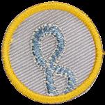 Bokstaven og tallet viser hvilket mål i programmerkene saken passer til. Merkene og målene finner du i loggbøkene og i Speiderbasen.