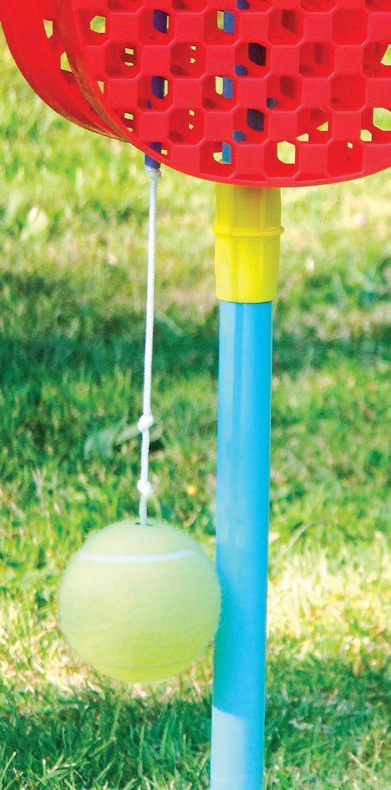 b Hvis solen skinner, så skynd dig udenfor og spil noget bold, fx volley eller stangtennis. Faktisk er det ligegyldigt, hvad du spiller, så længe du bare kommer ud. Du er jo efterhånden gennemsigtig af at sidde foran computerskærmen, din fedtede spegepølse.