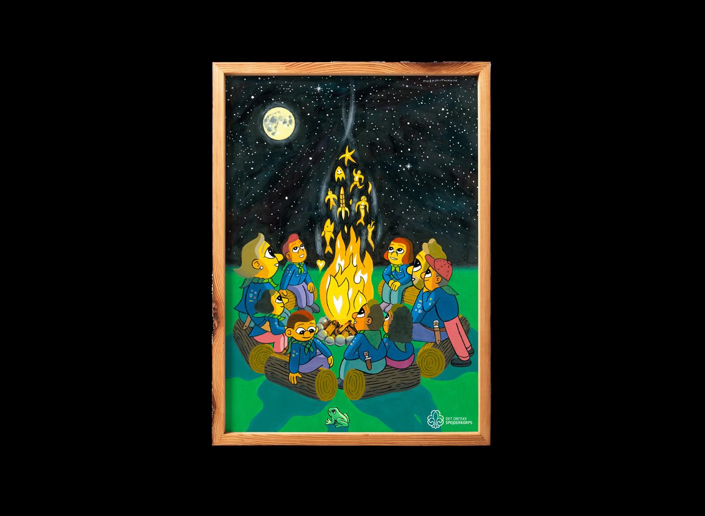 → Spejderlivet er fyldt med magiske øjeblikke – og nu kan I få en unik kunstplakat, der fanger netop dét. Den danske kunstner HuskMitNavn har skabt en eksklusiv plakat til Det Danske Spejderkorps, der hylder fællesskabet, friluftslivet og de uforglemmelige stunder omkring bålet. Motivet viser en spejdergruppe samlet om et glødende bål, hvor gnisterne danser mod nattehimlen og vækker fantasien til live. Plakaten er trykt i høj kvalitet på FSC-certificeret papir og måler 50 x 70 cm – perfekt til at pynte i jeres spejderhytte, patruljelokale eller møderum.
