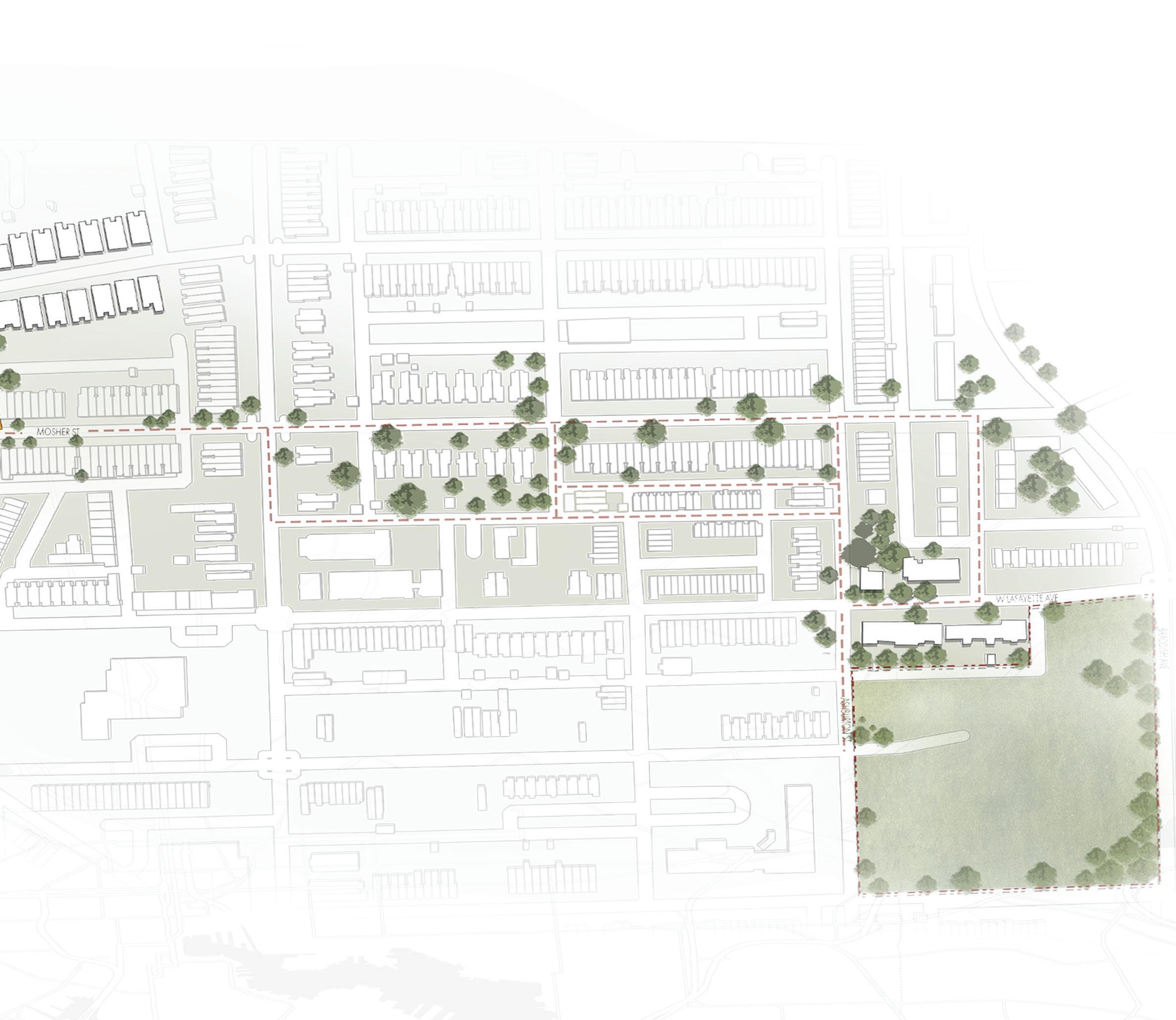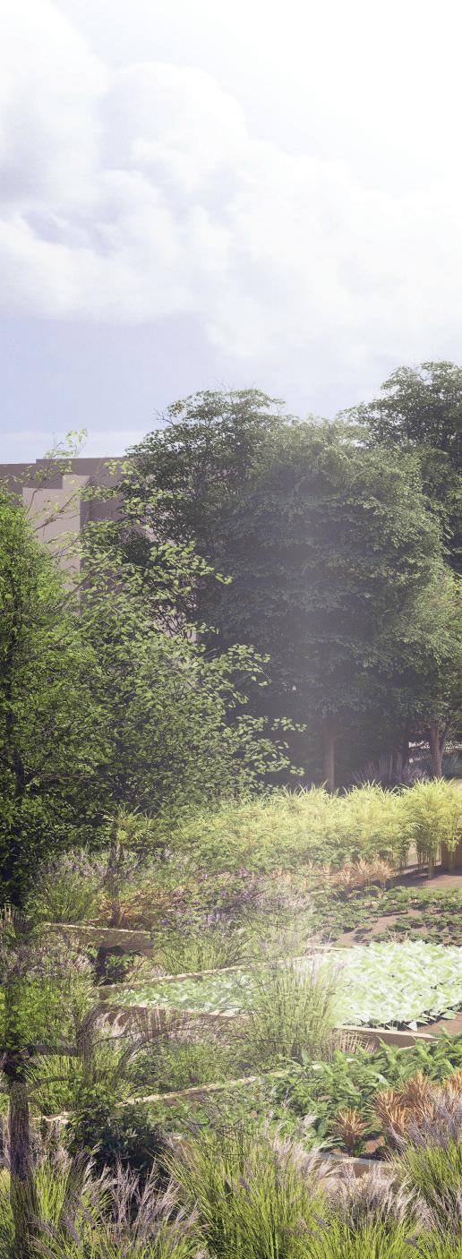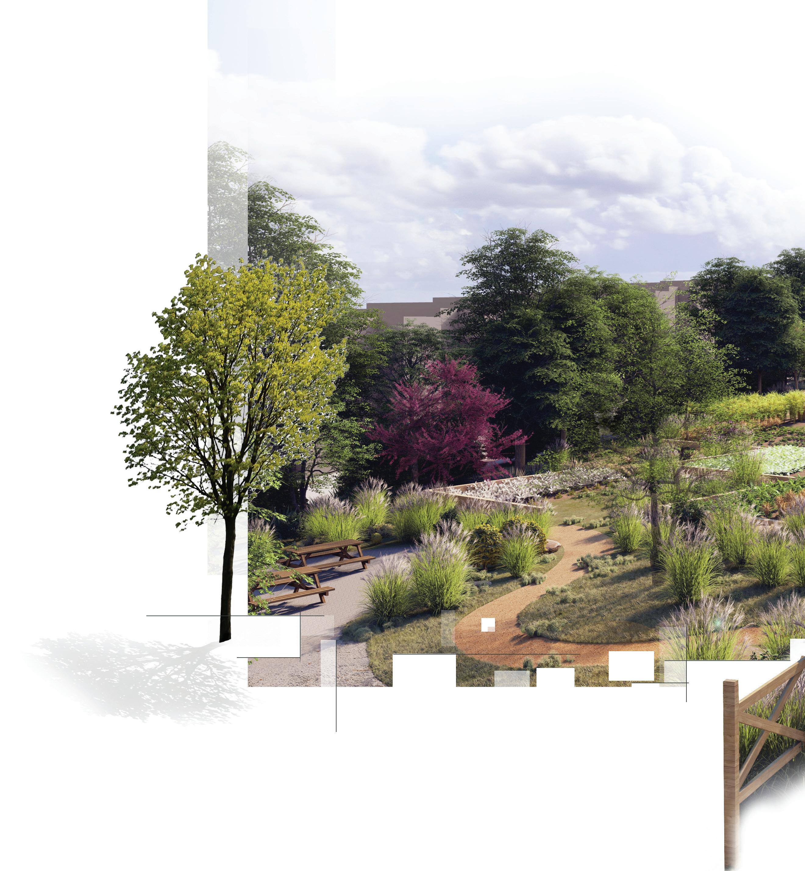 This 1-acre vacant lot is located in a neighborhood with limited access to healthy food options and reliable personal transportation. In response, an agricultural and ornamental garden is proposed as a shared community space that fosters stewardship, social interaction, and knowledge-sharing around food production and gardening.