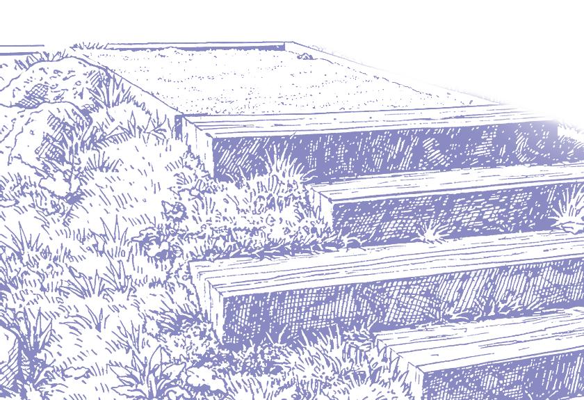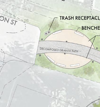 Locally sourced materials and decomposed granite shape a gentle, durable path at a dead-end connection, transforming a steep grade into a safe and legible connection to the neighborhood.