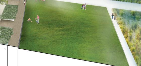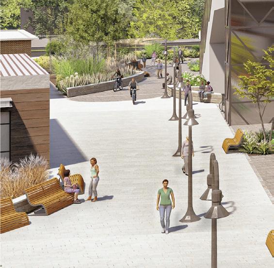 Floodable Greenspace & Waterfront | view facing Mixed-Use District