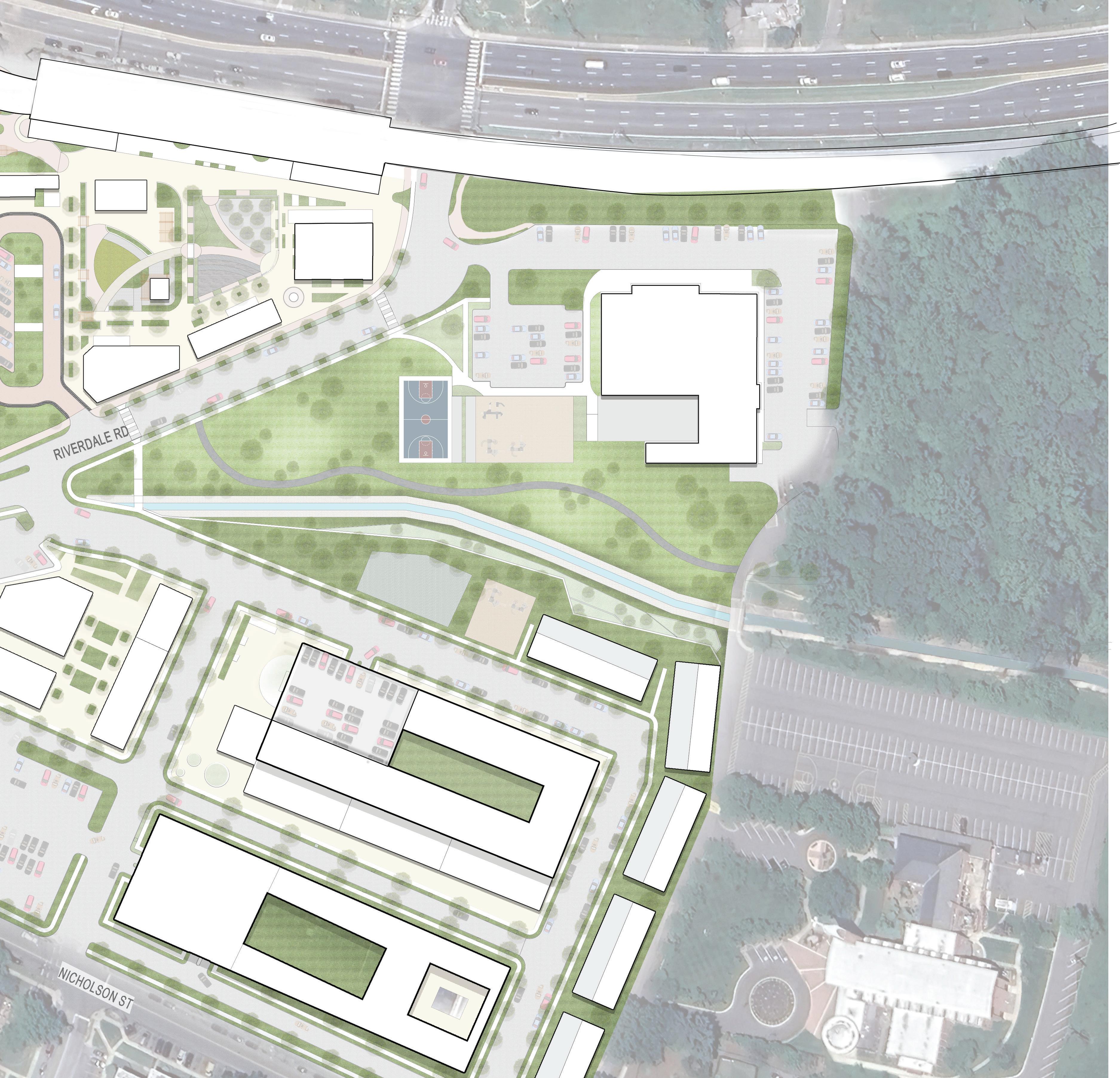 Riverdale Station will be one stop along Maryland’s Purple Line light rail system. Surrounded by established residential neighborhoods and a strong cultural context, the project expands the role of the station beyond transit to support shared, multi-use public spaces. The design envisions the station as a destination for both light rail commuters and local residents, while responding to anticipated redevelopment of the adjacent strip mall into a mixed-use and residential district.