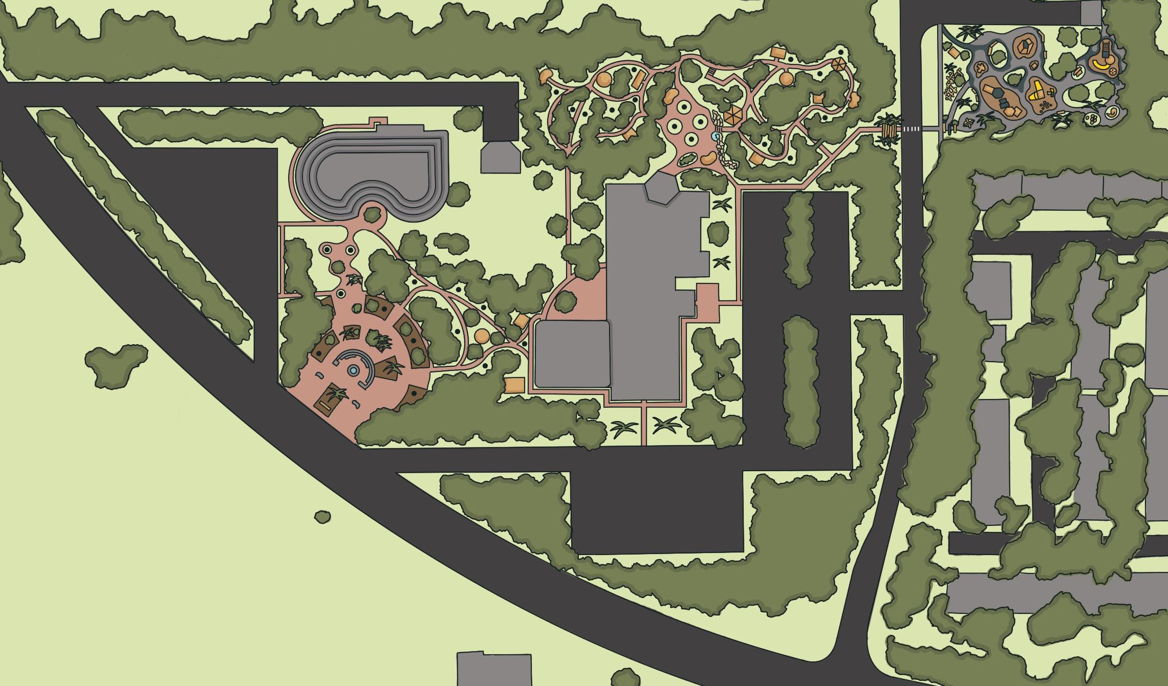 Here Iāve included images of the garden spaces and some interior renders of the school. I also included a site plan of the campus as well as a floor plan of the education building.