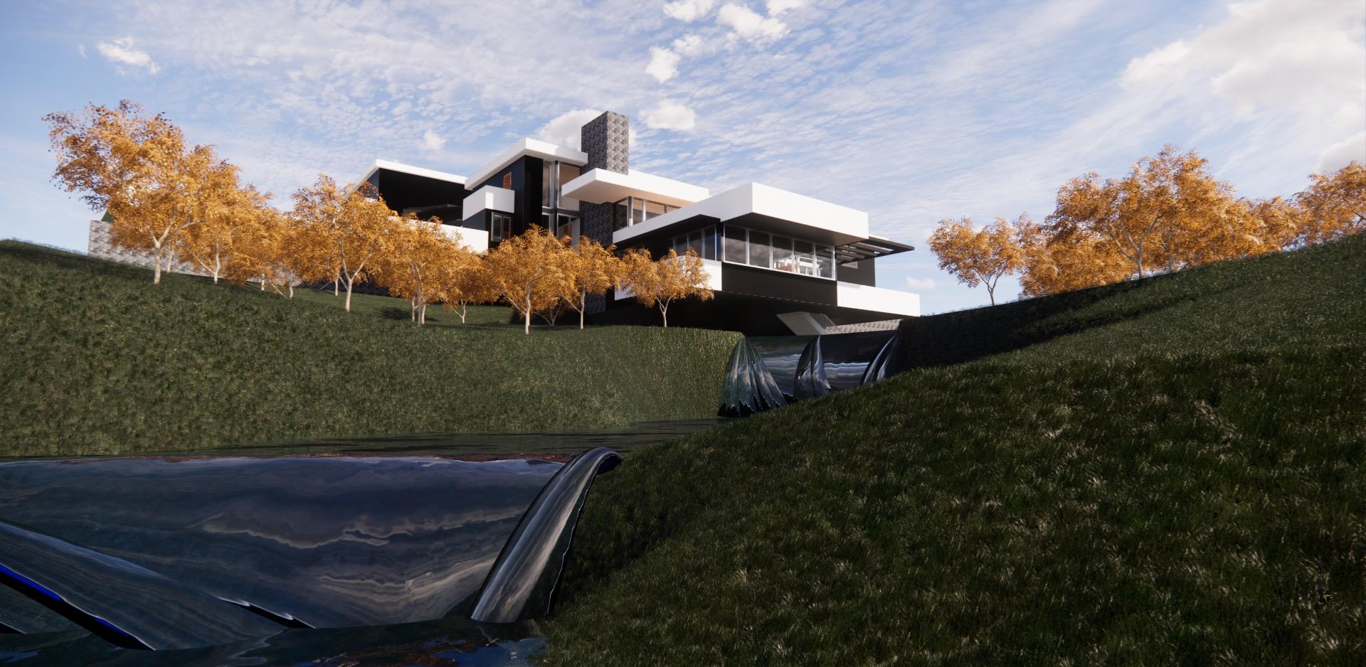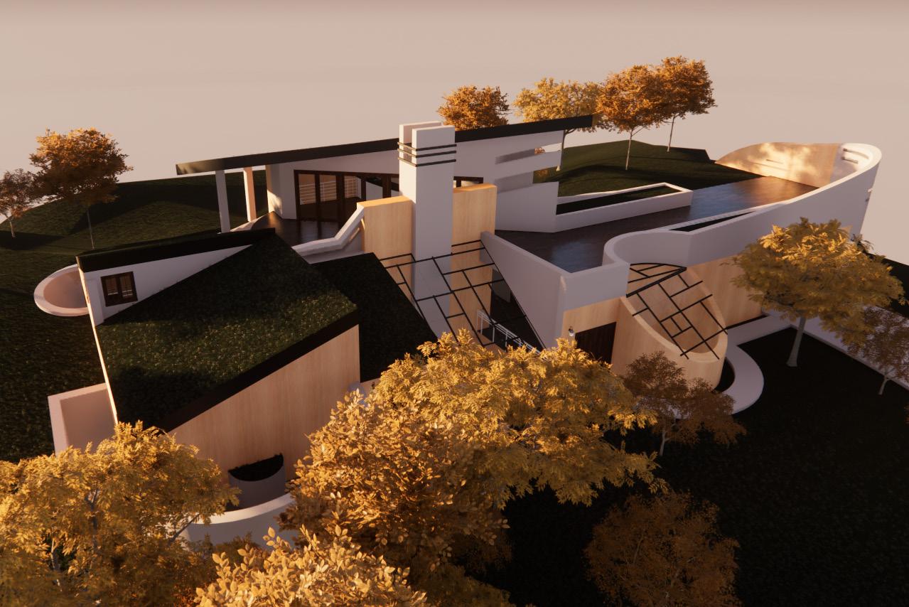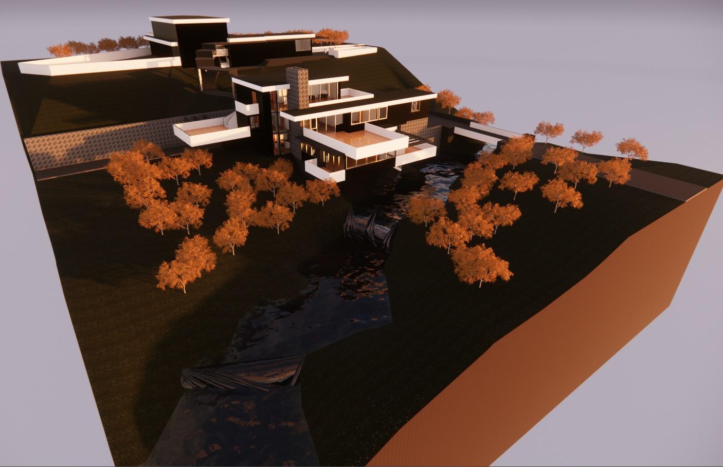 For the house I designed, I took a lot of inspiration from earth ship homes. I made the walls with a mix of concrete and rammed earth and incorporated green roofs. I loved being able to experiment with all the unique shapes.