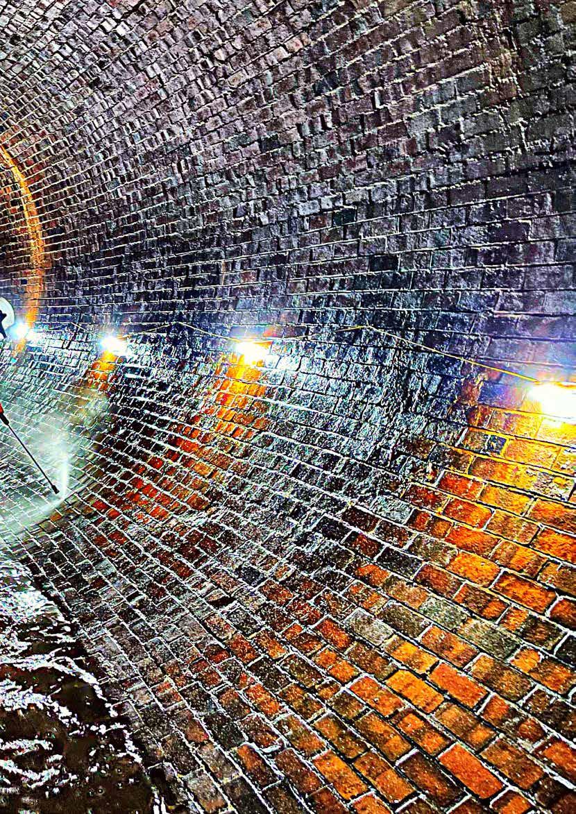 We were tasked with initially pressure washing both structures and cleaning of the internal surfaces to permit further detailed inspection by the Client’s engineering team using a combination of ‘hands on’ inspections and drone inspections, and to determine targeted areas of repair works. we engaged with one of their long-standing rope specialist sub-contractors who assisted with the bellmouth vertical structure works while our workforce undertook the repair works along the length of the tunnel. The repairs included a combination of specialist mortar re-pointing materials, resin injection and complete brick replacement to a strict technical specification, while maintaining full visual and detailed records of each repair undertaken.