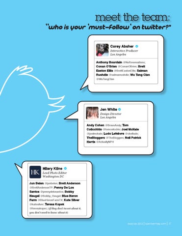 Interactive Producer Los Angeles Anthony Bourdain @NoReservations; Conan O'Brien @ConanOBrien; Brett Easton Ellis @BrettEastonEllis; Salman Rushdie @salmanrushdie; Wu Tang Clan @WuTangClan