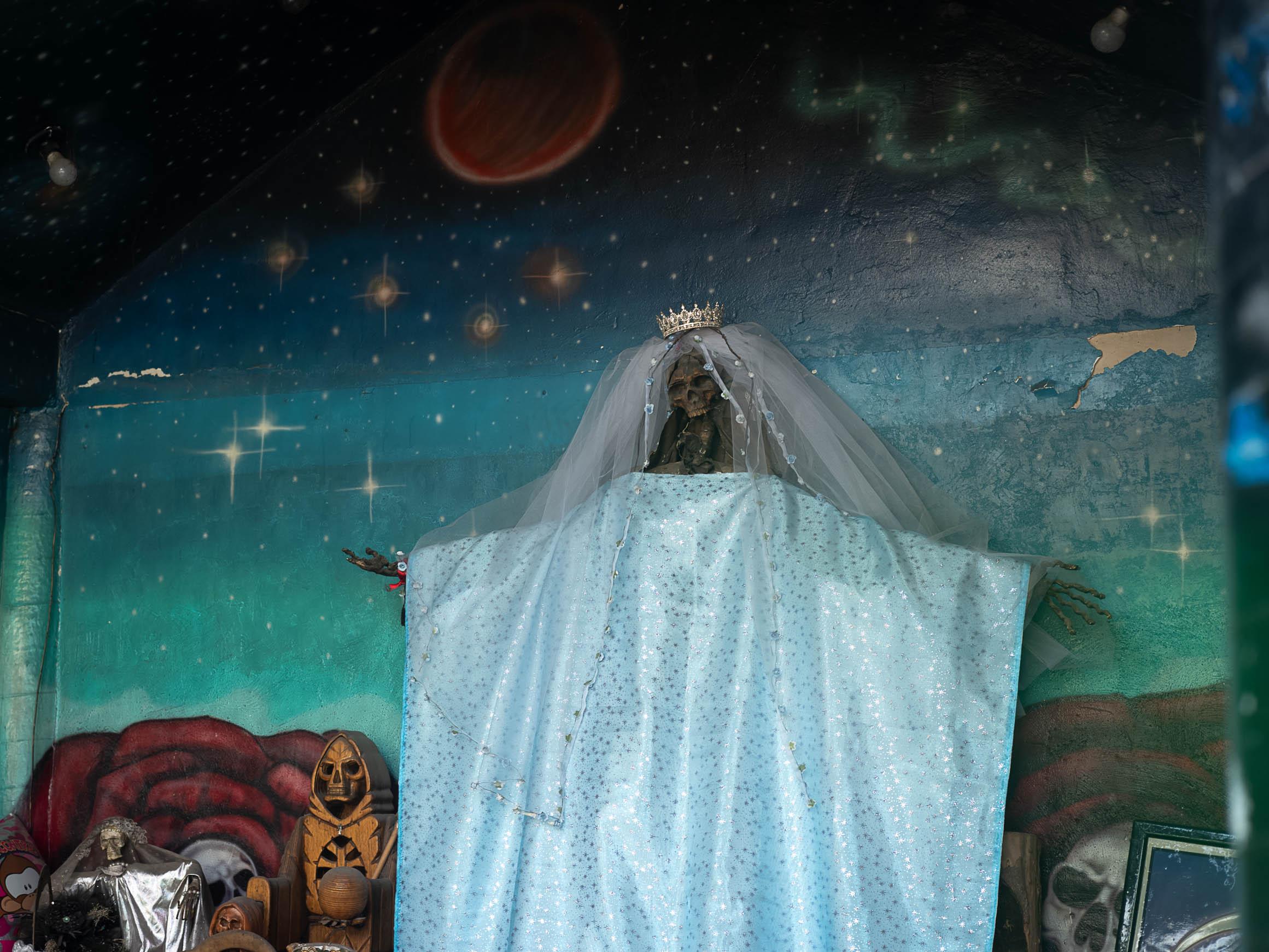 This project seeks to look beyond the darkness and fear. As a Mexican photographer living in Paris, I am drawn to the complexity of this devotion, not to romanticize it, but to understand and humanize it. I have spent months speaking with devotees, attending ceremonies, and photographing their sacred spaces. My aim is to document the light within this belief: how it provides comfort, identity, and resilience to people who often live at the margins of society.