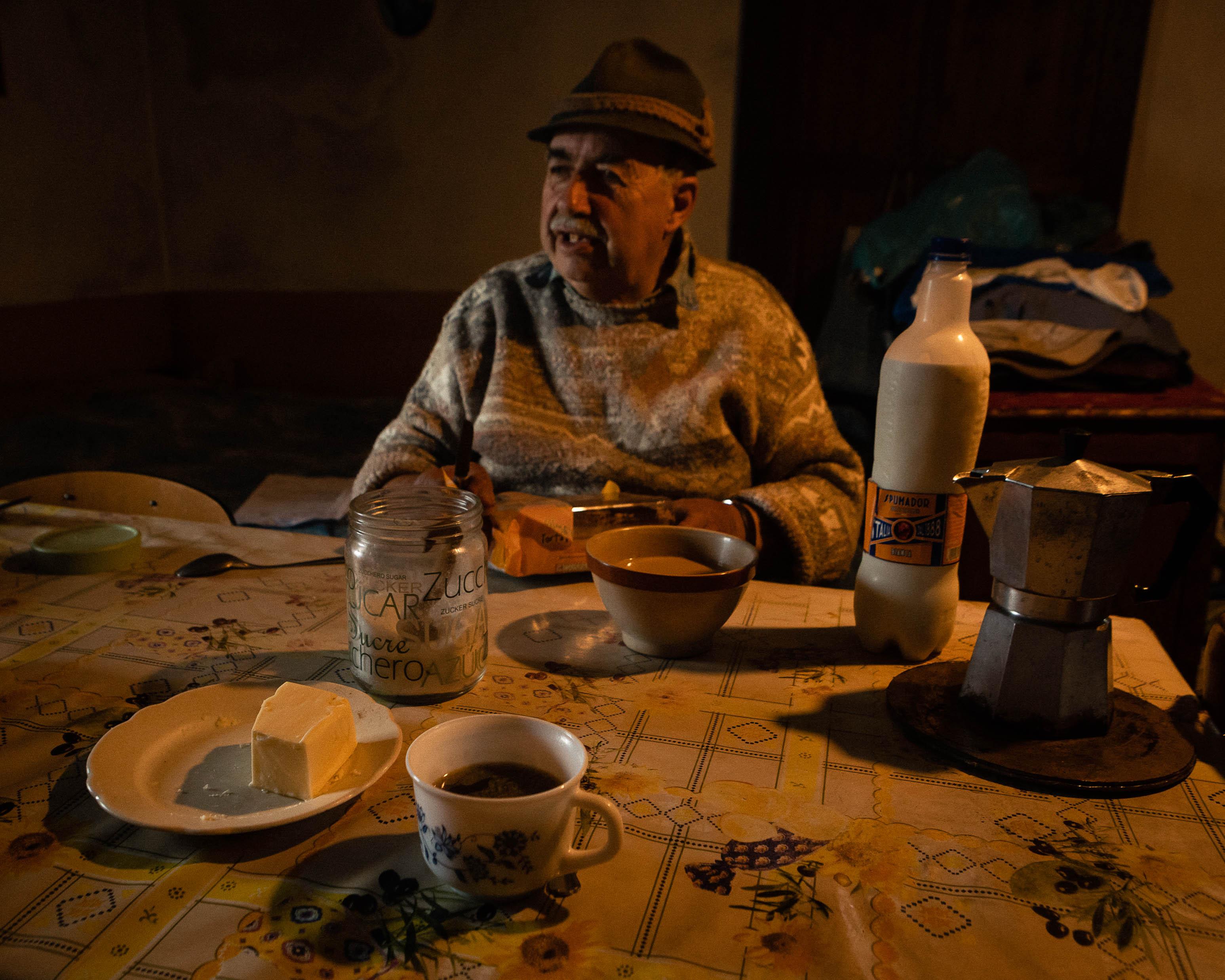 Emilio was born in Varfey in March 1948 and is currently the last remaining inhabitant. He has always led a life dedicated to raising goats, cows and sheep. He has never had a wife, this is because none of his girlfriends ever wanted to move to his corner of the mountains. Today, he is retired and spends his days walking in the woods, carving wood and contemplating nature.
