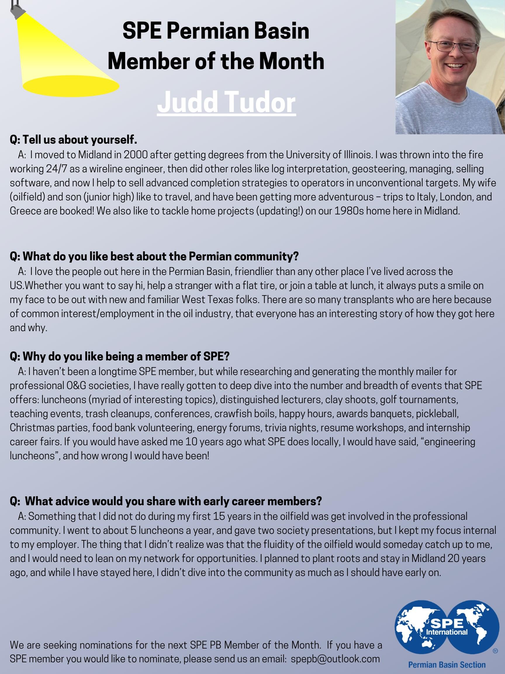 First and foremost, if you haven’t already registered to a end the Southwestern North America Regional Awards Banquet, it’s not too late. Purchase a cket online and come enjoy a fun evening of dinner, drinks, and live music in celebra on of the numerous talented students and SPE members in our community. I look forward to celebra ng with you all on Thursday, May 9th!