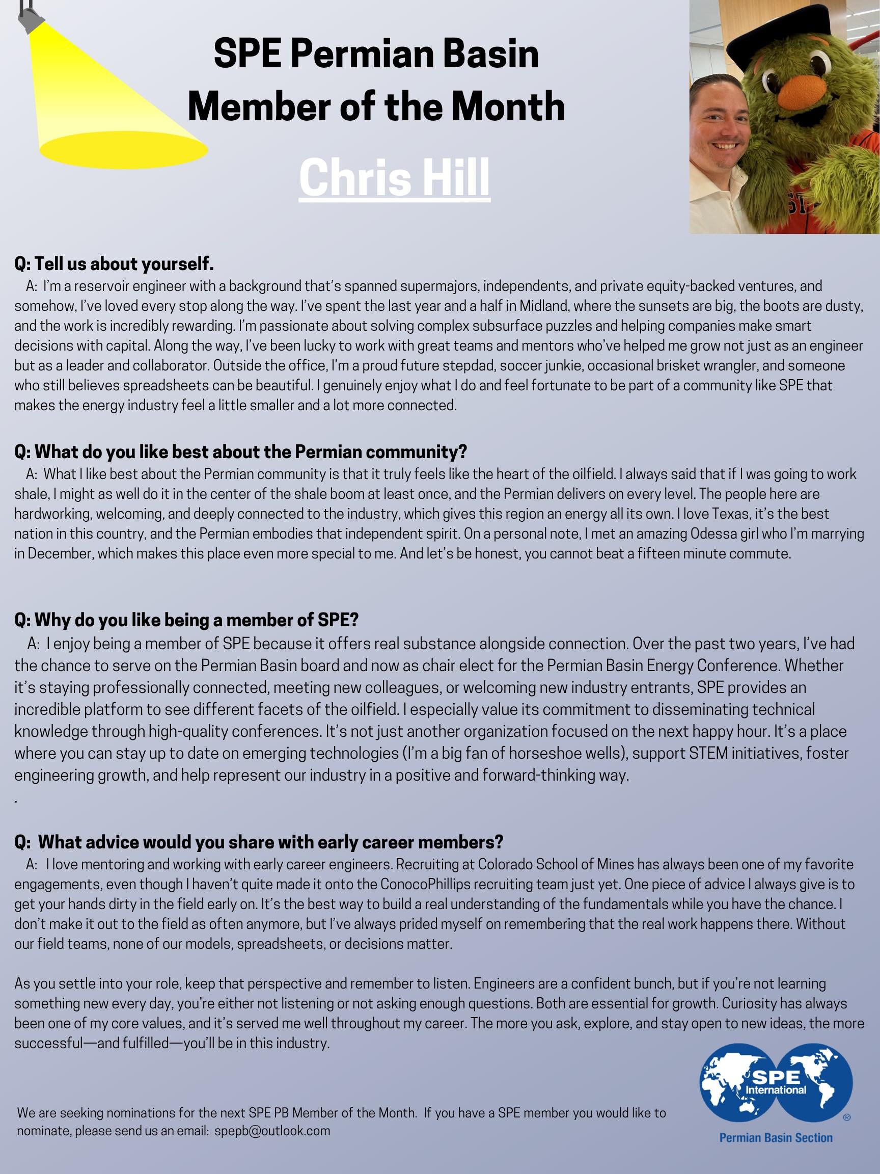 As we begin a new SPE year, I find it fi ng to reflect on the many quali es that make Midland and the broader Permian Basin a great place to live and work.