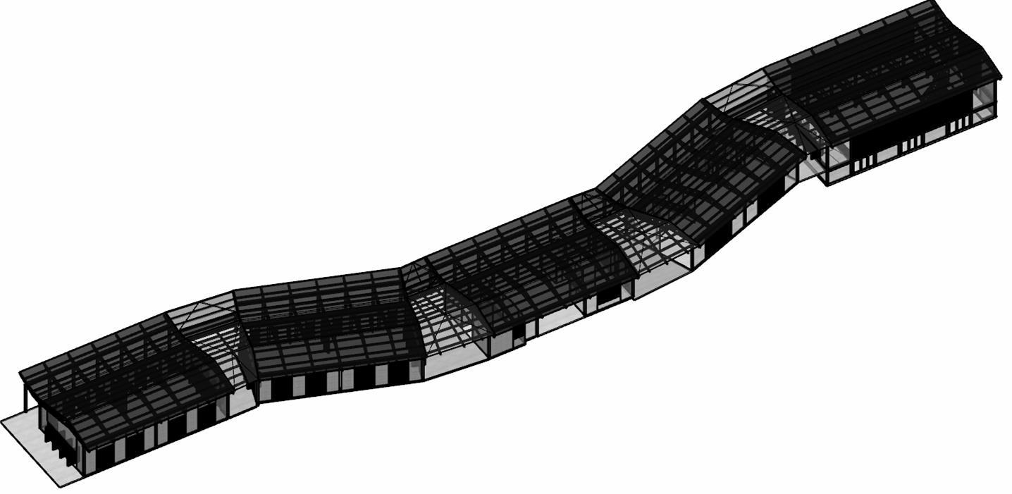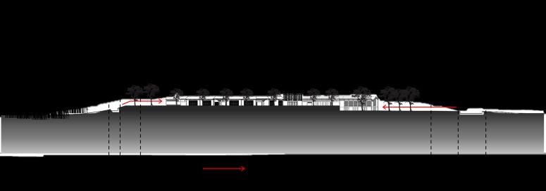 El proyecto se conforma de diferentes vagones que son la agrupación de los módulos base en los cuales se ubica las diferentes necesidades del programa, estos vagones o pabellones se conectan a partir de la cubierta, la cual demarca una circulación que articula los espacios interiores de la propuesta