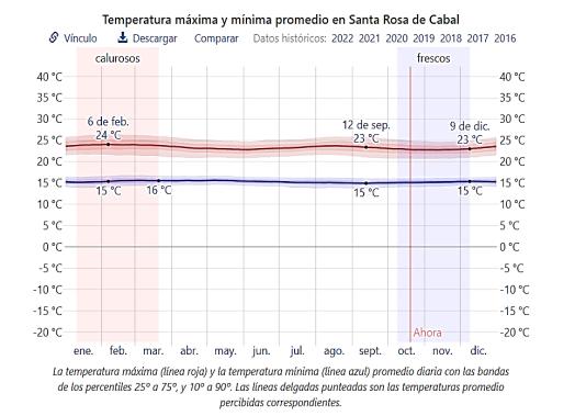 Santa Rosa de Cabal es un municipio colombiano ubicado al nororiente del Departamento de Risaralda en las coordenadas 4 grados 52 minutos latitud norte y 75 grados 37 minutos de longitud oeste Santa Rosa es atravesada por el Rio San Eugenio, cuenta con una altitud de 1,700 mts sobre el nivel del mar con un clima templado de montaña, con temperatura promedio de 19°C; su extensión municipal es de 48 600 hectáreas