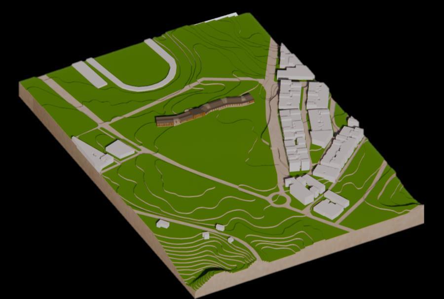 Así mismo el edificio se convierte en un edificio importante por estar sobre una de las vías principales, y con la propuesta de los diferentes senderos peatonales permite la integración del nuevo conjunto residencial y el estadio a la misma vez