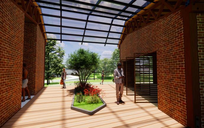 El Centro Cultural busca que el visitante este en constante relación con el lugar ya sea de manera visual o física, en el caso de la circulación al interior del edificio siempre estará con unas zonas verdes arbóreas como visual inmediata y los diferentes espacios de permanencia mantendrán una relación con las visuales exteriores lejanas del lugar como los guaduales, el estadio y los cerros
