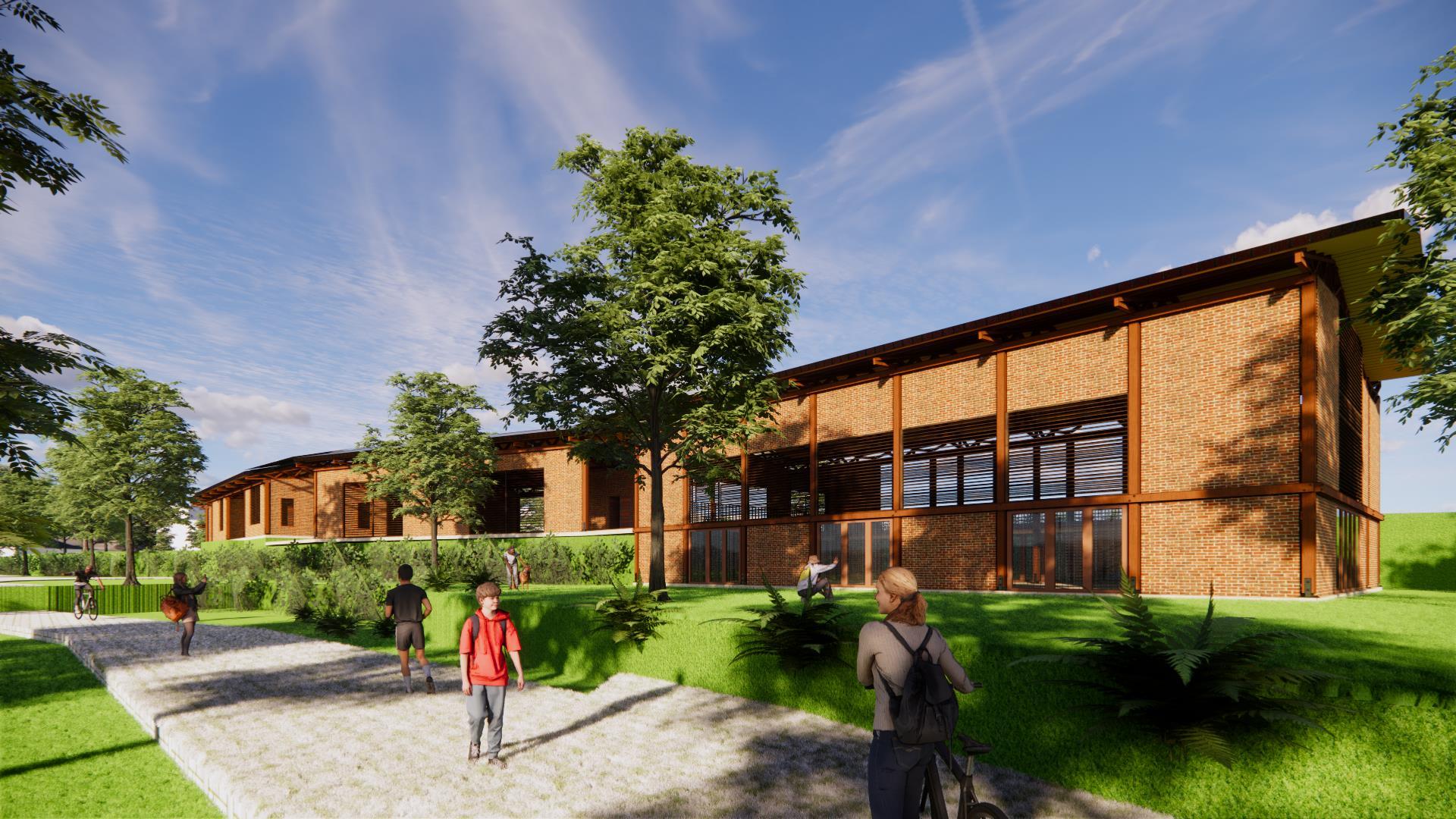 Para la aproximación al edificio se realizara mediante un bulevar localizado sobre la Carrera 13, un recorrido acompañado de vegetación, ciclo ruta, mobiliario para poder permanecer, que iniciara desde la rotonda de la Carrera 13 con la Vía a Guacas culminando en el Estadio de Santa rosa.
