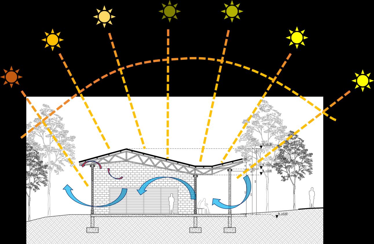Los edificios mantienen un mismo diseño de cubierta y de cerramientos perimetrales en todos sus espacios, esto con el fin de permitir un confort al interior de cada uno de los espacios y las actividades que se vayan a realizar La cubierta y la forma que tiene esta permite el ingreso de aire constante y además en la parte superior se liberan los aires calientes que se acumulan durante el transcurso del día y así mismo ayuda con la humedad que se concentra por el clima de la zona