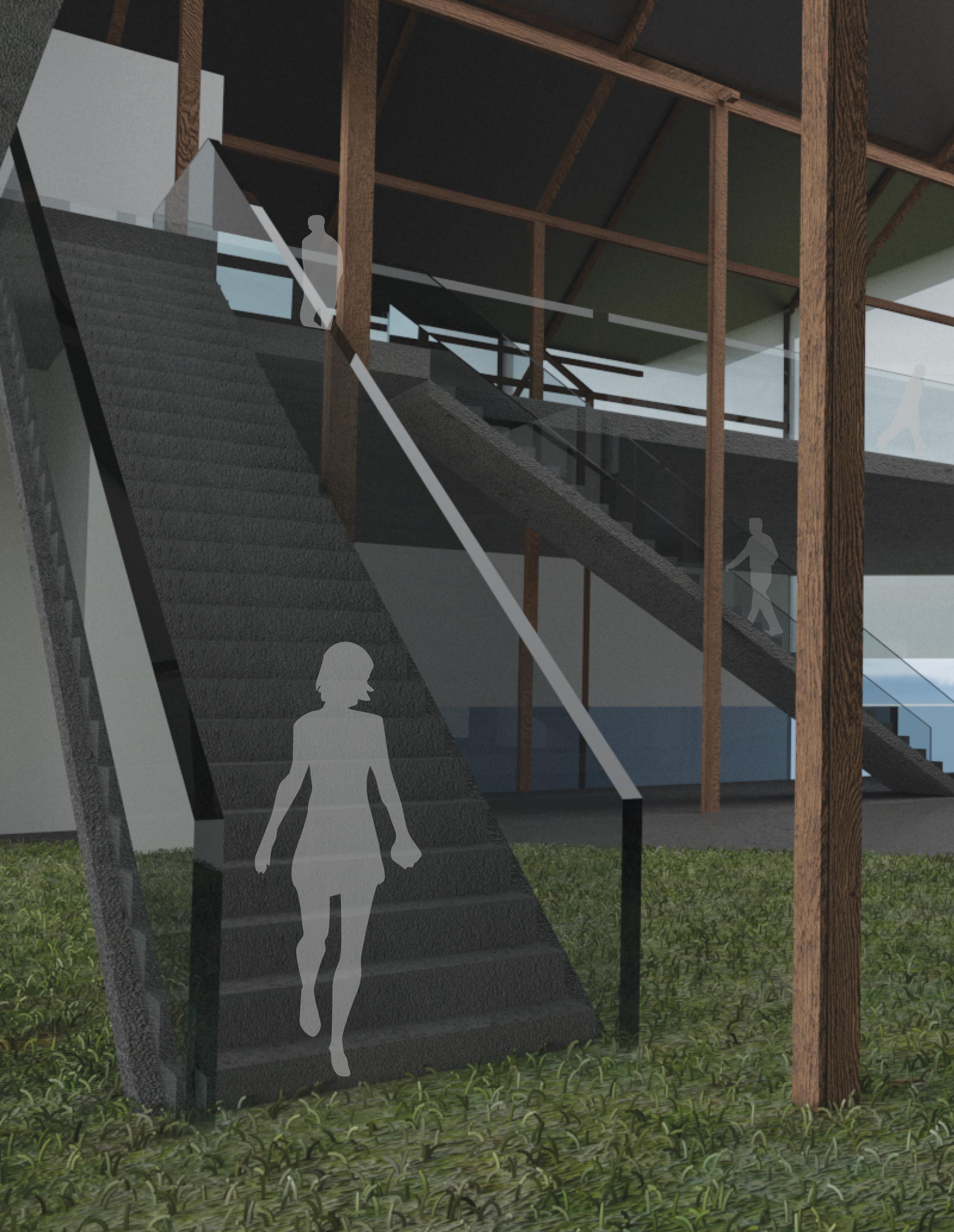 Each path leads to four overlooks that relate to the four victims. Here, the cantilievers point towards a significant area for people to observe, which can be seen in the site plan. The final event takes place under the cantilievers and inbetween the cutout landscape. Important information about May 4th will be engraved on the wall so people can go here and become educated on the events of May 4th. From the three activities, materiality, and location, anybody who interacts with the memorial feels immersed in the history and environment of May 4th.