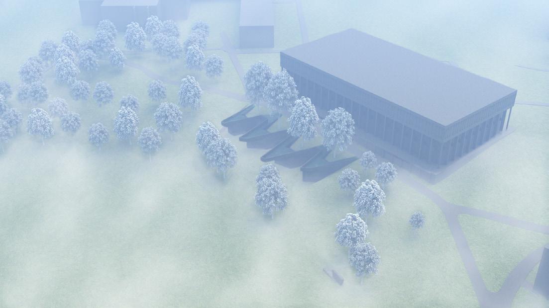 The form is embedded in the hillside, moving around the trees to feel inclusive of its surroundings. It is centered around three words: connect, observe, and educate. People can connect in two ways.