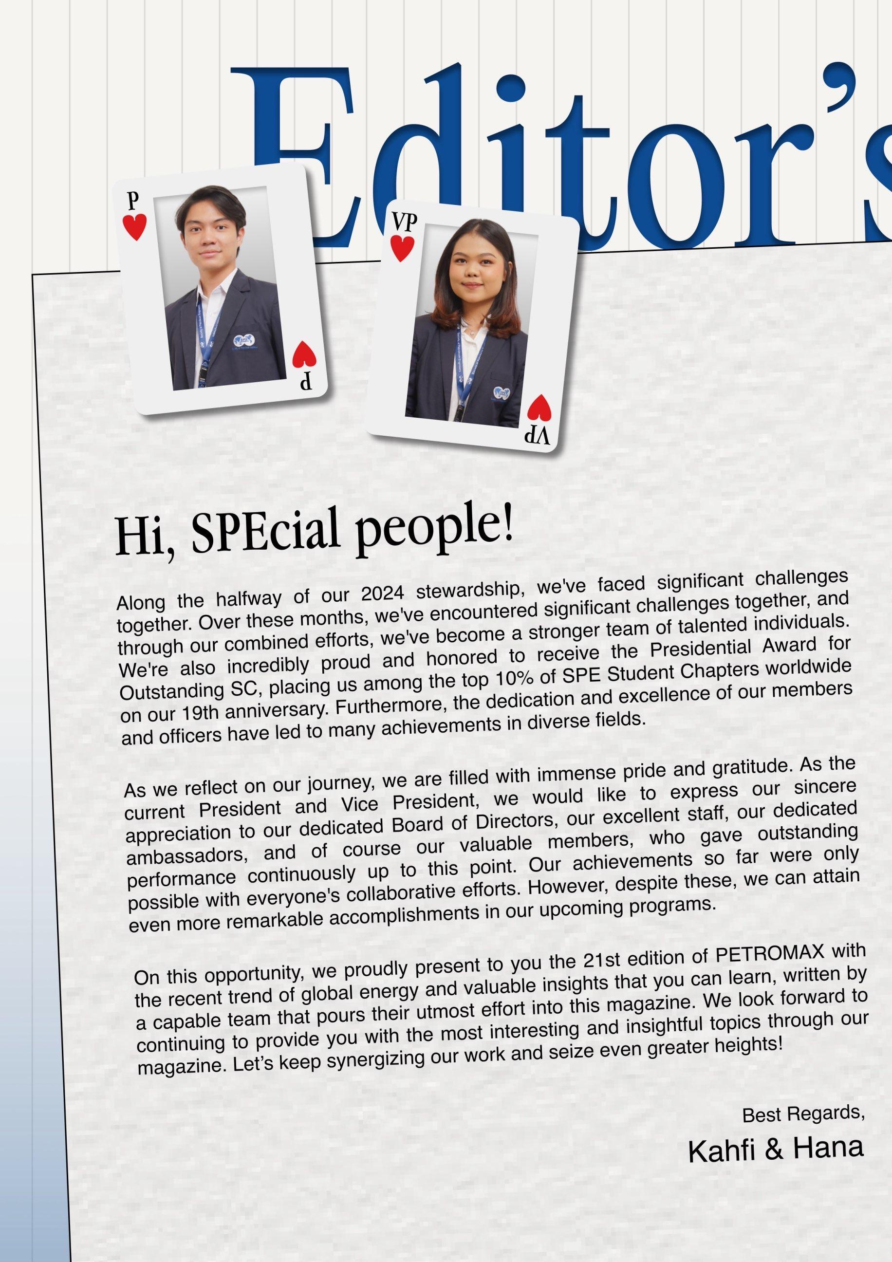 Our dedicated brings and featured specialist interviews with a Operations and PPFG Geologist at BP, the President of SPE International 2024, Presidents of SPE student chapter. Get ready to be inspired by a wealth of facts and new knowledge adventures from experts, because we are responsible for energy and the state of the Earth.