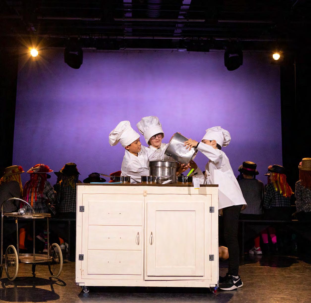 In April, a large cast of talented and enthusiastic Year 7 students took part in our Year 7 Drama and Theatre production which celebrated two of Roald Dahl’s much loved children’s stories‘The Twits’ and ‘The Witches’, both adapted for the stage by David Wood. Featuring original songs composed by Year 12 Music scholar Ryan, colourful circus routines choreographed by members of the cast and wonderful costumes created with the help of Year 9 Backstage students, the production kept audience members fully entertained from start to finish. Both plays featured larger-than-life characters and slapstick comedy routines which our young cast thoroughly enjoyed creating during rehearsals and bringing to life in performance; puppets also featured in both, adding to the overall visual impact of the production.