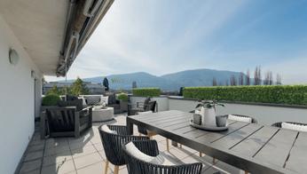 Situé dans le quartier résidentiel des Perrières, sublime attique de 5.5 pièces avec terrasse panoramique. Deux garages en sus. CHF 2’990’000.– 200 m² 4 3