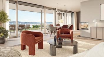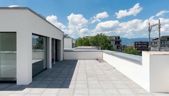 En plein cœur de la ville, magnifique attique de 4.5 pièces avec vue imprenable sur le lac et les Alpes. Un garage double en sus. CHF 2’650’000.– 160 m² 3 2