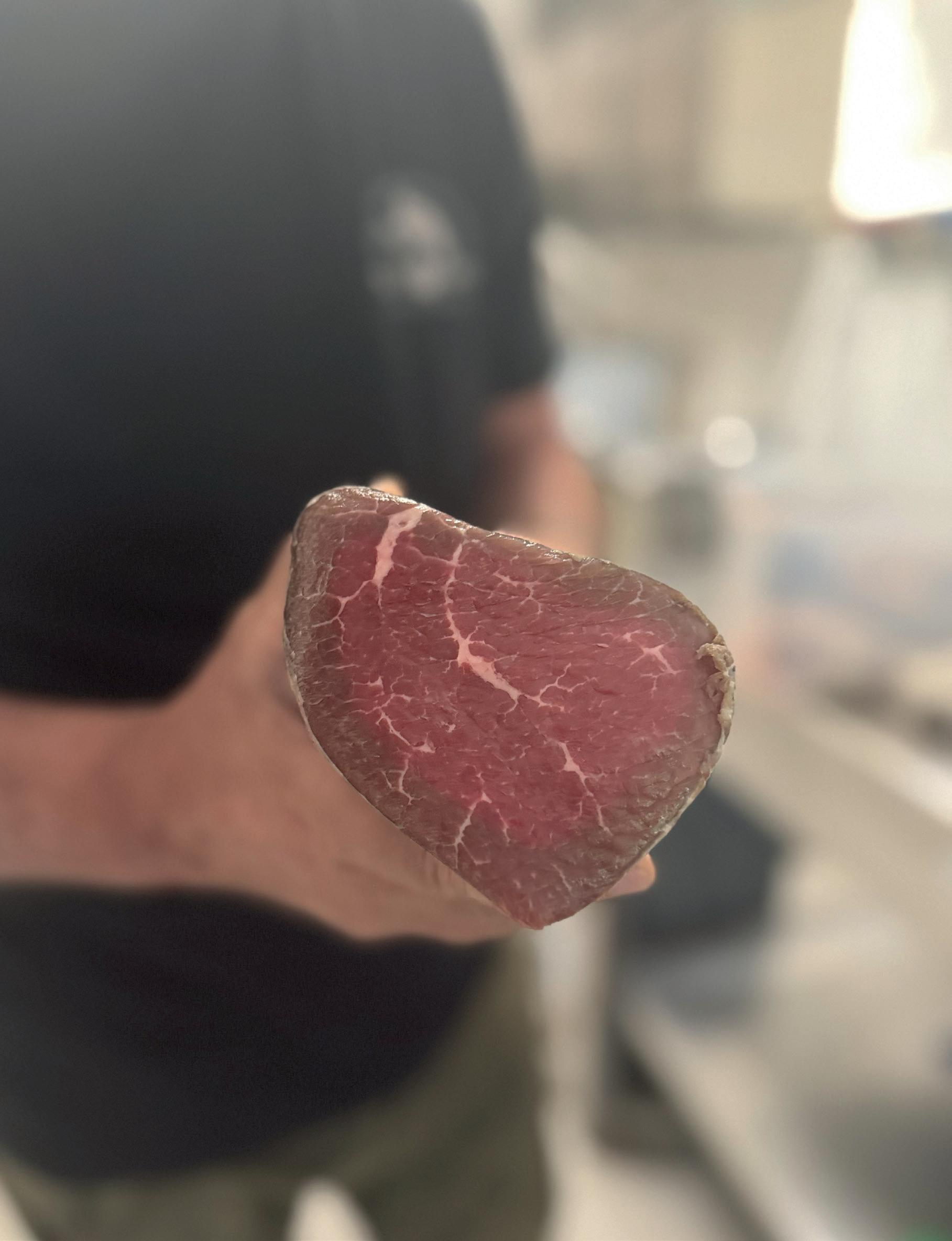 Ici, on vous sert la fameuse ciccia accompagnée de tomates cerises aux saveurs fruitées, de la mortadella nostrale et une focaccia fourrée à la saucisse et au stracchino. Le tout sur une jolie petite terrasse avec vue imprenable sur la place du village. «Notre secret, c’est le sucre, reprend Massimo Bacci, qui se lance dans une explication technique en attaquant un plat de ciccia. Nous n’en mettons pas. 99% de la production charcutière contient du dextrose ou du saccharose. Ils sont souvent utilisés dans les produits à longue maturation comme le salami, non pas pour adoucir le goût comme on le croit souvent, mais pour aider la fermentation. Quand on met un salami à sécher au-dessus de 6°C, les micro-organismes naturels présents sur la viande, les lactobacilles, se réveillent. Ils consomment le sucre présent dans les muscles, mais comme ils sont lents et produisent de l’acidité, on ajoute du sucre supplémentaire pour accélérer le processus d’assèchement. Aujourd’hui, la grande majorité de la charcuterie italienne qui se dit artisanale ne l’est pas. Elle est tellement célèbre à travers le monde que la rapidité et le rendement ont remplacé l’un de nos ingrédients les plus précieux : le temps.»