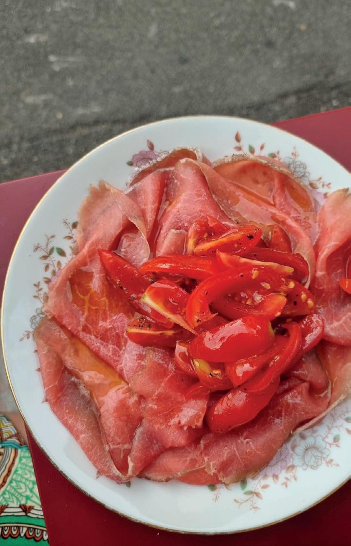 Un plat de ciccia concciata servi avec des tomates cerises toscanes.