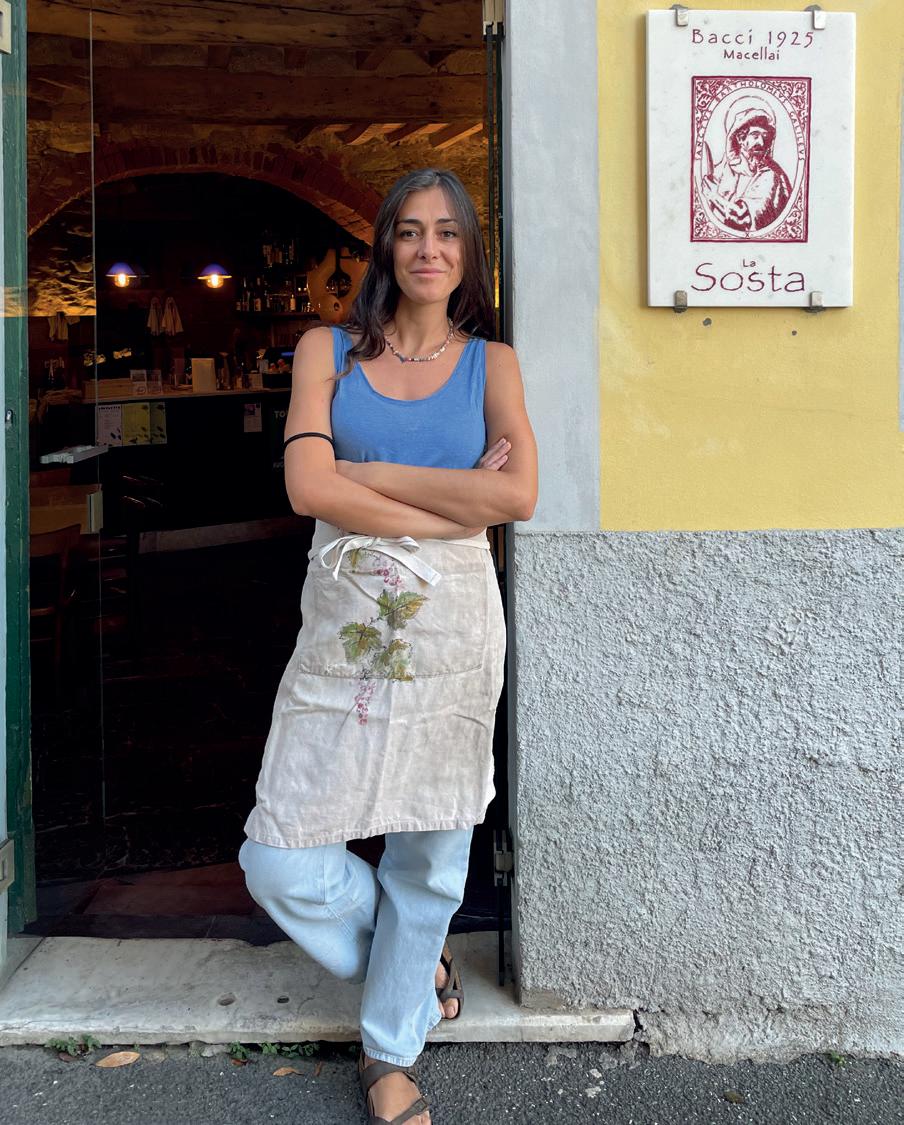 Ci-dessus de gauche à droite : Margherita Bacci, charcutière et œnologue, qui tient le bar à vin La Sosta où elle sert les miracles charcutiers de son oncle Massimo.