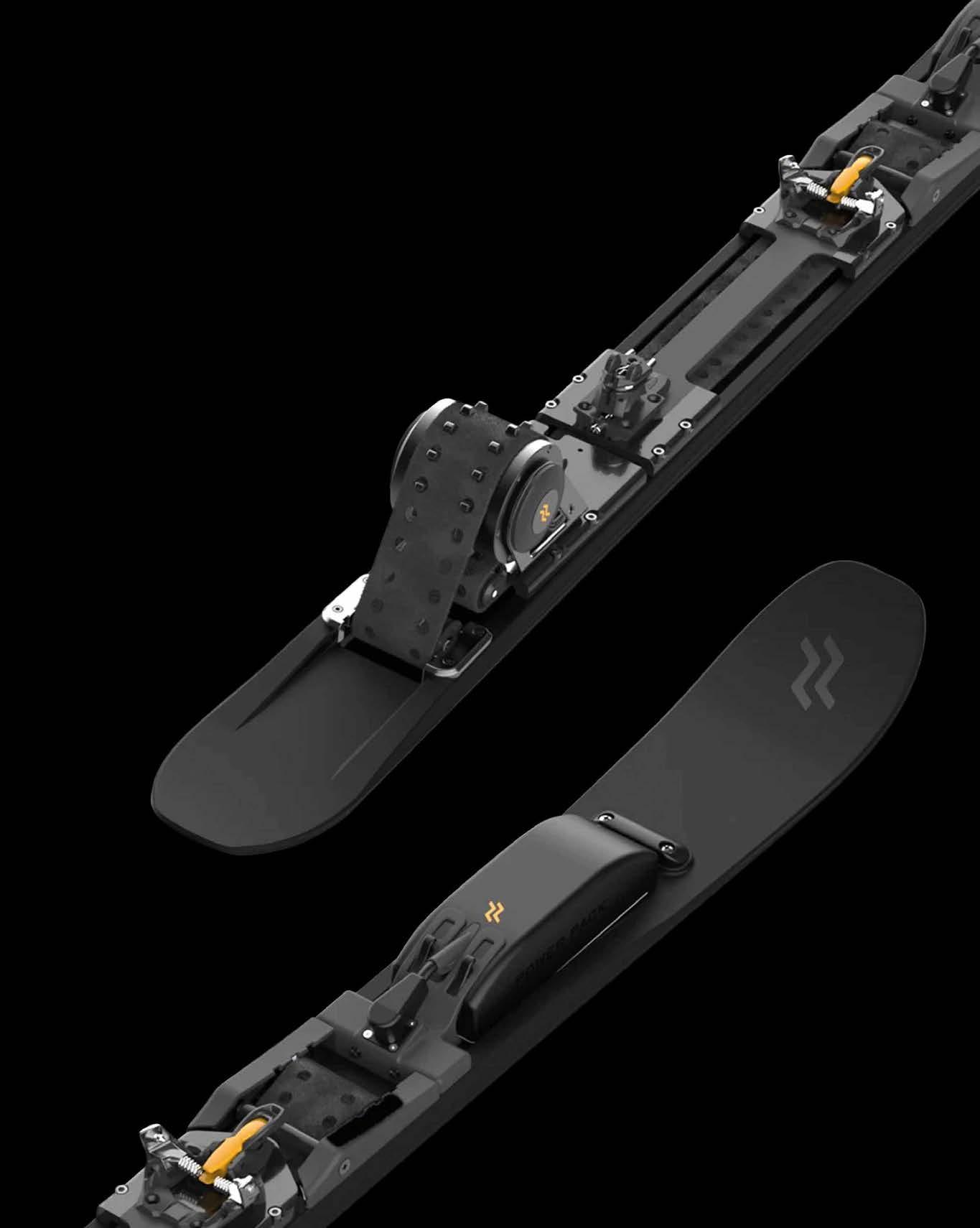 avancer le char d’assaut. Même si le skieur doit quand même donner un peu de sa personne en mettant une spatule devant l’autre. Nicola Colombo assure que son système permet de monter quatre fois plus vite qu’avec la seule force humaine. Une fois le but atteint, il suffit ensuite d’enlever les batteries pour profiter de la descente.