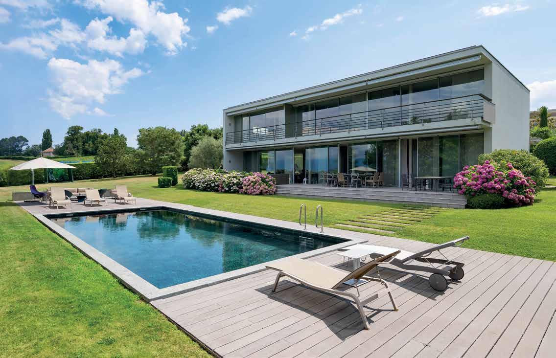Répartie sur 3 niveaux, sublime villa contemporaine de 10 pièces offrant une vue exceptionnelle sur le lac. Ses espaces de vie lumineux s’ouvrent sur des terrasses panoramiques, un jardin arboré ainsi qu’une belle piscine.