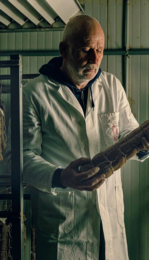 de Carrare d’où est extrait un marbre couleur de lait depuis bien avant Michel-Ange. C’est là que Massimo Bacci tient la charcuterie locale. Une institution centenaire, fondée en 1925 par son grand-père dont il est le digne héritier avec sa nièce, Margherita. « Mon grandpère était un norcio, un charcutier qu’on appelait ainsi parce qu’il était dit que la meilleure viande venait de Norcia en Ombrie, raconte Massimo, quatorze fois finaliste au Campionato Italiano del Salame, le championnat italien du salami traditionnel naturel. Le norcio allait de maison en maison au moment de la mise à mort du cochon, car le paysan faisait tout sauf la conservation des viandes. Une phase cruciale, puisque dans les campagnes, les réfrigérateurs n’existaient pas. Il