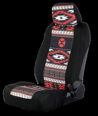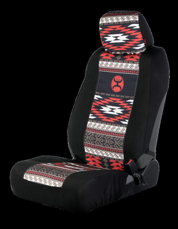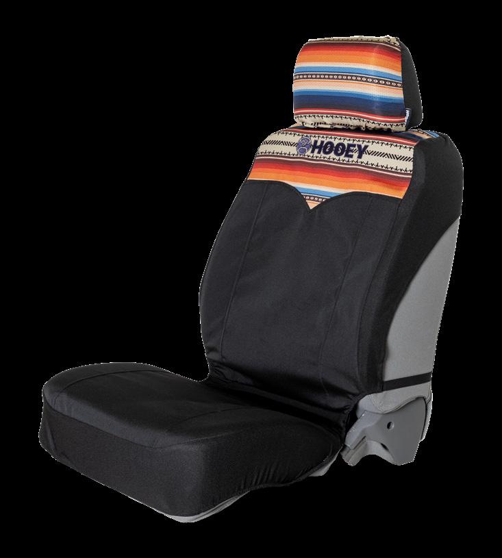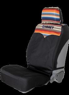 600-denier polyester with water resistant coating · Protects against stains and damage · Embroidered "Hooey" logo · Two-piece design SAFE-SEAM allows for unhindered airbag deployment · Built-in access One seat and headrest cover per retail package · Foam backing