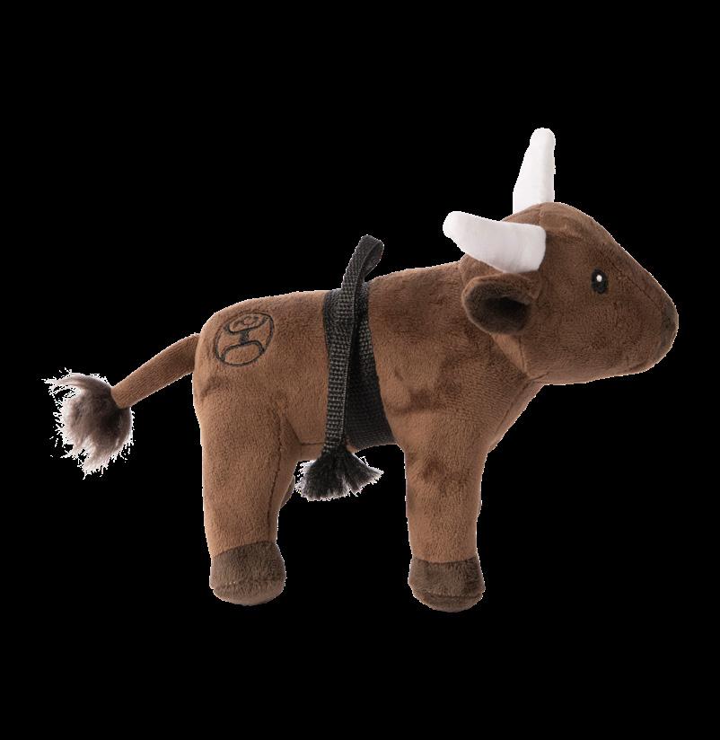 Rodeo bull-inspired design brings the excitement of Texas rodeos to your pup’s playtime · Durable construction · Interactive squeaker · Soft plush exterior · Durable webbing handhold for easy gripping during tug games. · Easy to clean · Embroidered iconic Hands Up logo. · This product can be for all types of play from chew, to fetch, to tug.