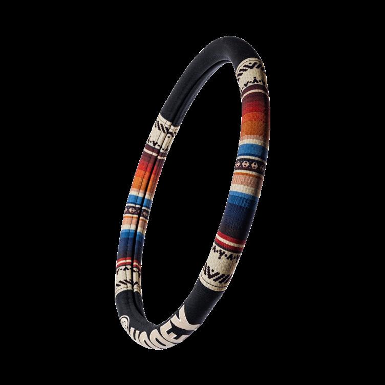 300-denier polyester with water resistant coating · Protects against stains and damage · Embroidered "Hooey" logo · Protects hands from heat and cold · Fits steering wheels 15"- 15.5" · One steering wheel cover per retail package · Foam backing