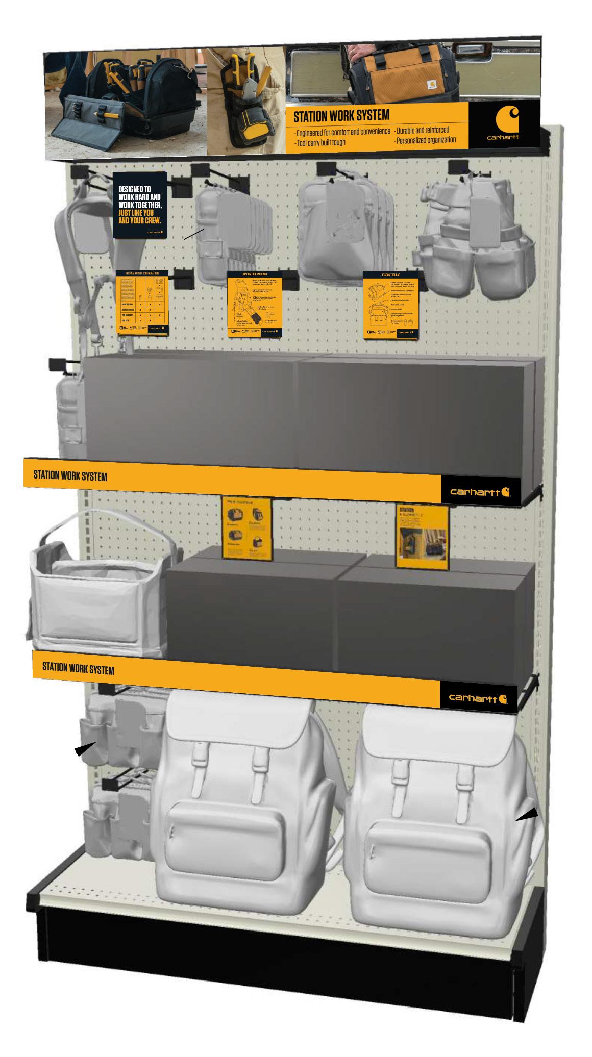 – Easily connects to Carhartt Freestanding Impulse Display to expand offering