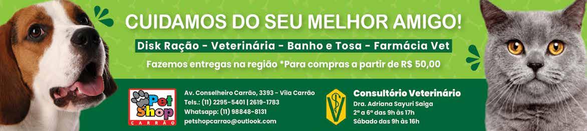 julianacardosopt @saopaulo.sp.leg.br O Grupo Raiz edita os títulos impressos SP Jornal, Jornal de Vila Carrão, Jornal do Tatuapé, Jornal de Vila Formosa e o portal diário de notícias regionais www.spjornal.com.br. Redação Avenida Guilherme Giorgi, 664 – Sala 5 - Vila Carrão - CEP 03422-000 - SP - Fone: (11) 2129-8591 - E-mail: redacao@ spjornal.com.br - Site: www.spjornal.com.br Editor responsável Antonio Gelfusa Junior MTb 60054/SP Projeto Gráfico Agência Pérgola Propaganda Circulação SP Jornal circula em alguns dos principais bairros da zona leste. Jornal de Vila Carrão circula em Vila Carrão , Aricanduva e Jardim Têxtil. Jornal de Vila Formosa circula na Vila Formosa e Jardim Vila Formosa. Jornal do Tatuapé circula no Tatuapé e Anália Franco. Veja mais detalhes em nosso mídia kit: spjornal.com. br/midia-kit Distribuição Corredores comerciais, bancas e semáforos Matérias e reprodução dos conteúdos da empresa Não nos responsabilizamos pelas opiniões emitidas em matérias assinadas e anúncios. É permitida a reprodução de conteúdos exclusivos quando citada a fonte. EX PE DI EN TE Descarte irregular Rua Dentista Barreto na altura do nº 1140 sofre com o despejo de objetos inservíveis. A população precisa respeitar os espaços públicos e procurar o local adequado para descarte, como por exemplo, os Ecopontos da cidade.