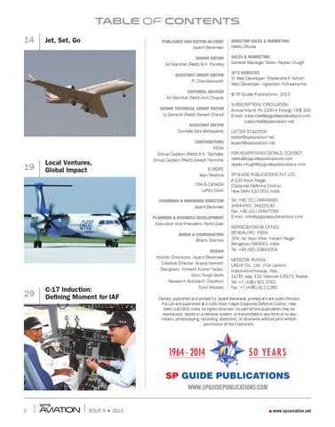Contributors India Group Captain (Retd) A.K. Sachdev Group Captain (Retd) Joseph Noronha Europe Alan Peaford USA & Canada LeRoy Cook Chairman & Managing Director Jayant Baranwal Planning & Business Development Executive Vice President: Rohit Goel ADMIN & COORDINATION Bharti Sharma
