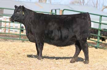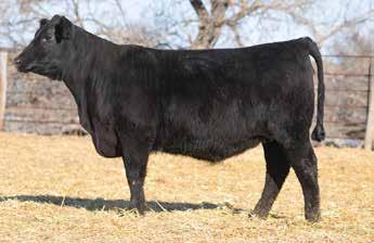 Really a neatly built, soft made, stout heifer whose pedigree combines two of the real dominant cow lines in the Angus breed. A daughter of Triumph, she draws on the maternal strength of the great Lawsons Chloe C815 on her top side, and then traces back to powerhouse donor dam, Pine Coulee Everelda W77 on the bottom side of her pedigree, as well as the great Donna 714. W77’s influence is strongly felt throughout this sale offering and her ability to add stoutness, muscle, and mass to her progeny is repeatedly seen. Really a complete heifer visually, this moderate framed female draws on tremendous maternal strength and is sure to be a solid building block in whatever new herd she ends up in.