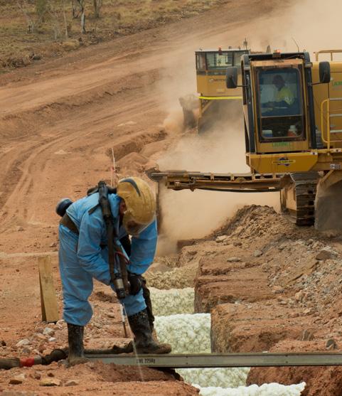 In just five months Spiecapag delivered 60km of DN200 high-pressure steel gas pipeline, connecting the new Atlas compression station to the existing Jemena's Darling Downs Pipeline. Our mainline construction crews were able to average 2.5km/day, while maintaining the highest standards of safety and quality. Construction of the pipeline required thirtyeight watercourse crossings, seventeen live service crossing and five road crossings using a variety of techniques such as HDD, Auger Bore and traditional open cut trenching.