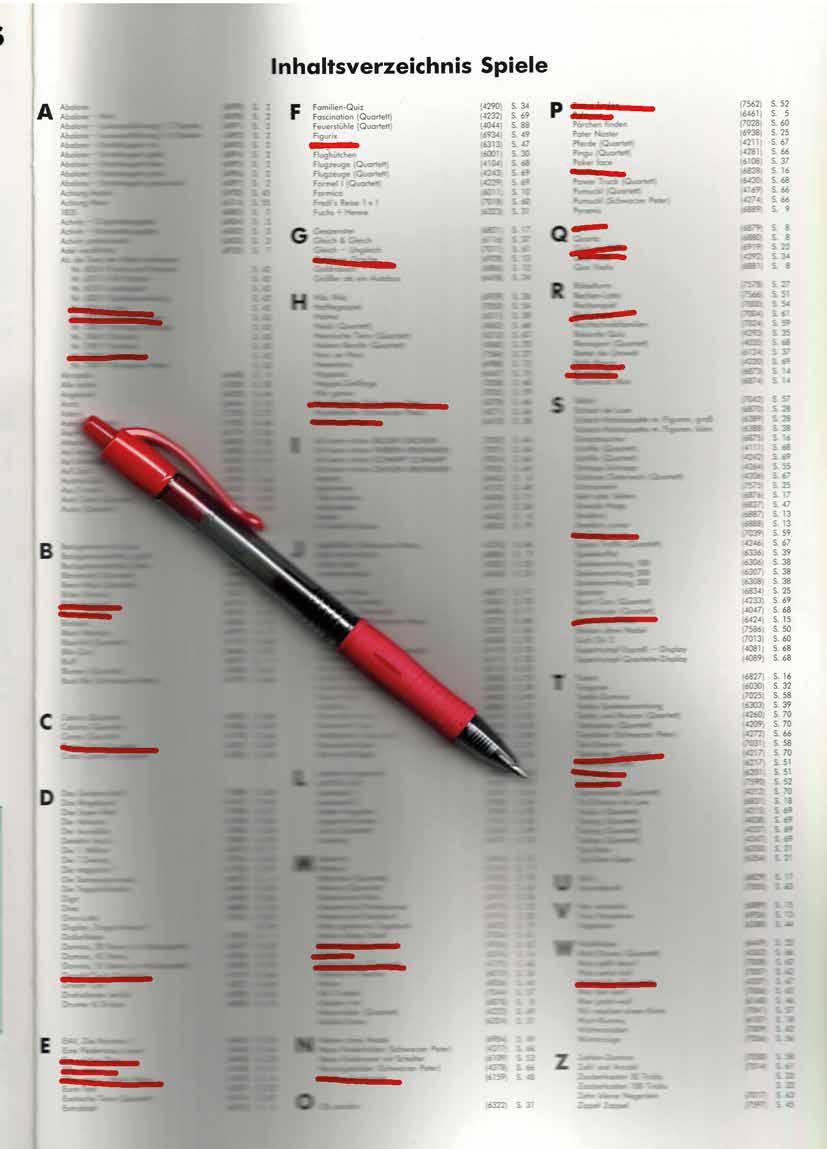 Abacus: 19 akspiele: 22 Amigo: 7, 95, 100 Asmodee: 46, 88, 101 Brain Games: 33 Captain Games: 16 Chelona: 100 Coppenrath: 97 Disney: 30 Djeco: 86 Gameslore: 13 Gigamic: 57, 96 Haba: 38, 84, 101 Hans im Glück: 94, 100 Hasbro: 88, 93, 97 Höser, Karsten: 24 Irgang, Birgit: 25 Huch: 49, 53, 64, 69, 101 Jumbo: 31, 93 Kiddinx: 28 Kindernachrichten: 23 Kosmos: 19, 30, 40, 100, 102 Lookout: 12, 19 Mandoo: 94 Mattel: 99 Mieg: 84 Moses: 44, 100 Oink Games: 19 Pegasus: 61, 102, 103 Piatnik: 72, 73, 96 Ravensburger: 87, 90, 91, 94, 97, 100 Rubik‘s: 62 Schmidt: 8, 14, 35, 41, 45, 83, 85, 91, 100, 103 Spielwarenmesse 4, 104, 105, 106, 108, 109 spielwiese.at: 1, 6, 10, 11,15, 63, 66, 73, 74, 75, 81, 82, 85, 86, 98, 103, 105, 106, Spin Master: 37 Strohmann Games 16 Vedes: 82 Wikipedia/Typisch Ich: 93 Wolf, Knut-Michael: 24 Wonderbow: 8 ZDF: 89 Zoch: 9
