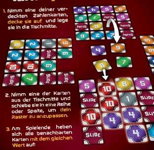 der Hand haben – die roten haben die Zahlen 4 bis 9, die blauen die Zahlen 1 bis 3 oder 10 bis 12. Die Frage ist wie am Casinotisch: Gehst du mit? Am Ende darf die Summe der gewonnenen Chips nicht höher als 21 sein. Außer alle kommen drüber. Dann am liebsten besonders weit.