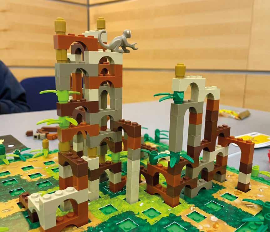 Mit großem Interesse wurde auch deshalb auf die Spielemesse in Essen im Herbst geschaut, weil dort Asmodee erstmals ein Exemplar eines Lego-Spiels zum Ausprobieren auf den Spieltisch stellte. Monkey Palace, entwickelt in dem neuen Asmodee-Studio Dotted Games, das nur Spiele mit den bunten Bauklötzen herausbringen soll. Lego selbst hatte vor 15 Jahren ja selbst derartige Brettspiele hergestellt, die jedoch recht aufgesetzt und nicht sonderlich erfolgreich waren. Was ist zu sagen? Monkey Palace funktio-