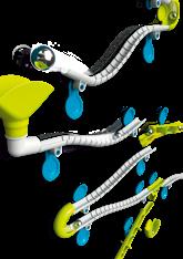 Roliga Gecko Run går ut på att bygga banor som den medföljande metallkulan kan flyga igenom. Det som är extra roligt med Gecko Run är att banan byggs på en vägg, ett fönster, en dörr eller något helt annat. Du sätter fast banor och komponenter och sedan är det bara att testa om kulan klarar av det – eller om banan behöver justeras lite.