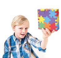 Kan du få de olikfärgade skumgummiformerna att gå ihop så att du kan forma en tärning av dem? Du bestämmer svårighetsgraden för varje uppsättning
