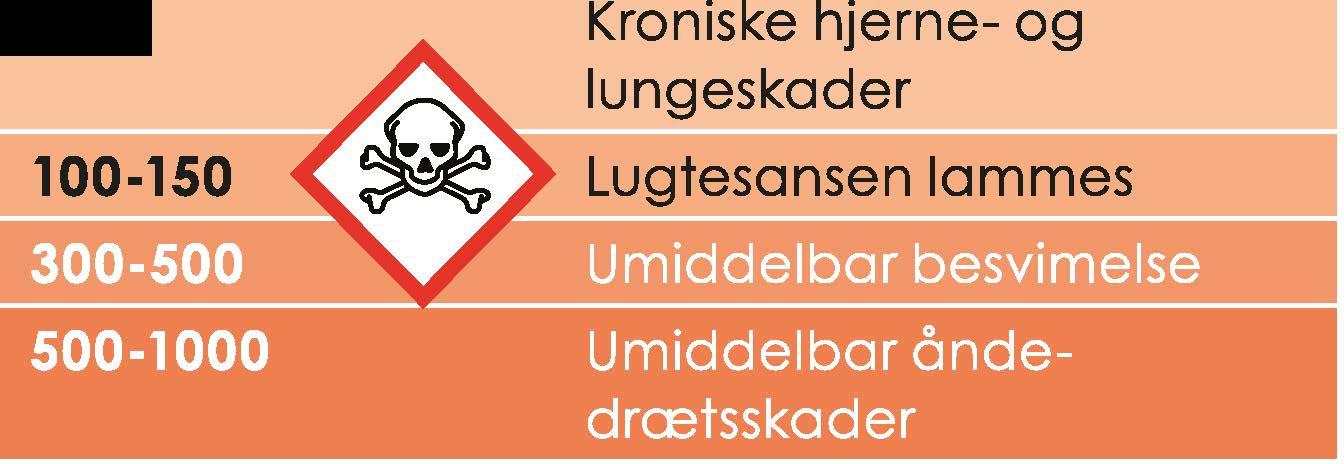 Påvirker blodværdierne Hygiejnisk grænseværdi Reduceret lungekapacitet